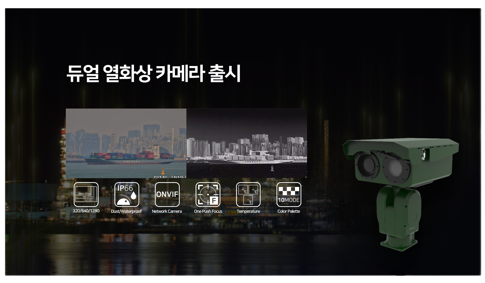 카메라 12종·줌 박스 카메라 3종·포지셔닝 카메라 6종 등 다양한 제품 성공적 론칭지속해서 이어가는 고객 편의와 요구에 맞춘 제품 개발[보안뉴스 엄호식 기자] 열화상 카메라는 열을 추적·탐지해 보여주는 특수 장비로, 일반 카메라와 달리 온도에 따라 다른 색으로 표현해 우리 눈으로 그 온도를 볼 수 있게 한 장비다. 영상감시 시스템 및 통합보안 시스템 전문기업 엔토스정보통신은 1년여의 개발기간을 투자해 최신 열화상 카메라를 개발했다. 그리고 고객의 다양한 요구에 대응하기 위해 뷸렛 카메라 12종과 줌 박스 카메라 3종, 포지셔닝 카메라 6종 등 18종의 다양한 제품을 성공적으로 론칭했다.▲엔토스정보통신 로고[로고=엔토스정보통신]엔토스정보통신의 열화상 카메라 라인업은 QVGA급부터 VGA급까지 다양한 해상도를 제공한다. 열화상 카메라에서 온도를 검출할 수 있으며, 렌즈 타입도 다양하게 구성해 선택의 폭을 넓혔다. 특히, 포지셔닝 카메라의 실화상 및 열화상 기능을 따로 분리해 판매할 수 있는 줌 박스 카메라를 개발함으로써 열화상만을 필요로 하는 고객들을 위한 라인업을 구성하며, 다양한 요구에 부응한 맞춤 제품을 제공하고 있다.외곽 및 장거리 감시에 특화된 듀얼 열화상 포지셔닝 카메라외곽 및 장거리 감시에 특화된 듀얼 열화상 포지셔닝 카메라로는 외곽감시 VGA급 3종(ENPT-S4344FLT100WT, ENPT-S4344FLT120WT, ENPT-S4344FLT150WT)과 화재감시 VGA급 3종(ENPT-S4344FLT100WRT, ENPT-S4344FLT120WRT, ENPT-S4344FLT150WRT)을 꼽을 수 있다.▲엔토스정보통신의 네트워크 열화상 카메라 Full Line Up[이미지=엔토스정보통신]듀얼 열화상 포지셔닝 카메라는 두 가지 센서를 함께 사용해 실시간으로 실화상과 열화상 영상을 동시에 취득한다. 이를 통해 사용자는 물체의 위치와 동작을 시각적으로 파악하는 동시에 열 이미지를 통해 물체의 온도 변화를 감지할 수 있다. 외곽과 장거리 감시에 특화된 듀얼 열화상 포지셔닝 카메라는 군부대나 해안선, 산, 공장 등 주요 시설물 관리 및 침입 감지에 활용할 수 있다. 이외에도 다양한 산업 분야에서 온도 변화에 민감한 환경 모니터링, 안전 및 보안 감시, 에너지 효율성 향상 등의 용도로 사용할 수 있다.▲듀얼 열화상 포지셔닝 카메라 인식거리[자료=엔토스정보통신]열화상 카메라는 시간이 지남에 따라 태양의 위치에 따른 빛 반사나 자동차의 헤드라이트와 같은 열원으로 인해 초점이 틀어지는 문제점이 발생한다. 엔토스정보통신은 이러한 문제점을 해결하기 위해 ‘One Push Focus’ 기능을 개발했다. ‘One Push Focus’는 수동으로 클릭해 초점을 맞추는 반자동 기능과 최소 1시간에서 12시간 사이를 설정할 수 있는 와치독(Watchdog) 기능으로 구성돼 있다. 이는 열화상 카메라의 정확성과 사용자 편의성을 높이는 역할을 하며, 사용자는 이를 통해 필요에 따라 초점을 수동으로 조절하거나 일정 시간 동안 자동으로 초점을 유지할 수 있다.▲One Push Focus 기능[자료=엔토스정보통신]온도 & 화재감시에 특화된 온도표출 열화상 뷸렛 카메라온도와 화재감시에 특화된 온도표출 열화상 뷸렛 카메라로는 외곽감시 VGA급 3종(ENOT-E63G13T, ENOT-E63G19T, ENOT-E63G25T)과 화재감시 VGA급 3종(ENOT-E63G13RT, ENOT-E63G19RT, ENOT-E63G25RT)이 있다.열화상 뷸렛 카메라는 보안 감시와 화재 감지, 에너지 효율성 모니터링 등 다양한 응용 분야에서 사용된다. 엔토스정보통신의 네트워크 열화상 뷸렛 카메라는 오픈 네트워크 비디오 인터페이스(Onvif : Open Network Video Interface Forum) 표준을 설정해 다른 통합 영상관제 시스템(VMS : Video Management System)과의 연동이 쉬우며, 시스템 통합과 관리를 효율적으로 수행할 수 있다. 또한, 습기나 먼지 등 외부 요인에도 영향을 받지 않고 안전하게 영상을 모니터링할 수 있도록 개발돼 모든 네트워크 카메라가 사용되는 현장에 적용할 수 있다. 정확한 객체 인식뿐만 아니라 온도 표출 기능을 통해 여러가지 환경에 대응하도록 지원한다.▲열화상 뷸렛 카메라 인식거리[자료=엔토스정보통신]엔토스정보통신의 기술력을 빛내는 3가지엔토스정보통신의 네트워크 열화상 카메라 Full Line Up에는 엔토스정보통신의 기술력을 빛내는 3가지가 적용돼 있다.- 다양한 색상 맵(Palette) 제공 : 엔토스정보통신의 네트워크 열화상 카메라는 10종류의 색상 맵(Palette)을 제공해 다양한 방식으로 열화상 영상을 표현할 수 있다. 이는 사용자가 온도 분포를 쉽게 이해하고 판별할 수 있도록 돕는다.- 다양한 온도 범위 설정 : 엔토스정보통신의 EN_T_R Series는 사용자의 요구에 맞춰 온도 범위를 설정할 수 있다. 이를 통해 특정 온도 범위 내에서의 변화를 감지하고 경고 및 조치를 수행할 수 있다.- 온도 영역 설정 : 엔토스정보통신의 EN_T_R Series는 3개의 온도 영역을 사각형 형태로 표출할 수 있다. 사각형 온도 영역은 최소 온도와 최대 온도로 정의되며, 각 온도의 영역은 사용자가 원하는 온도 범위에 따라 설정할 수 있다. 이러한 온도 영역은 온도 데이터의 특정 구역을 강조하거나 관심 영역을 표시하는 데 사용될 수 있다.▲다양한 색상 맵(Palette)[자료=엔토스정보통신]지속적으로 이어가는 고객 편의와 요구에 맞춘 제품